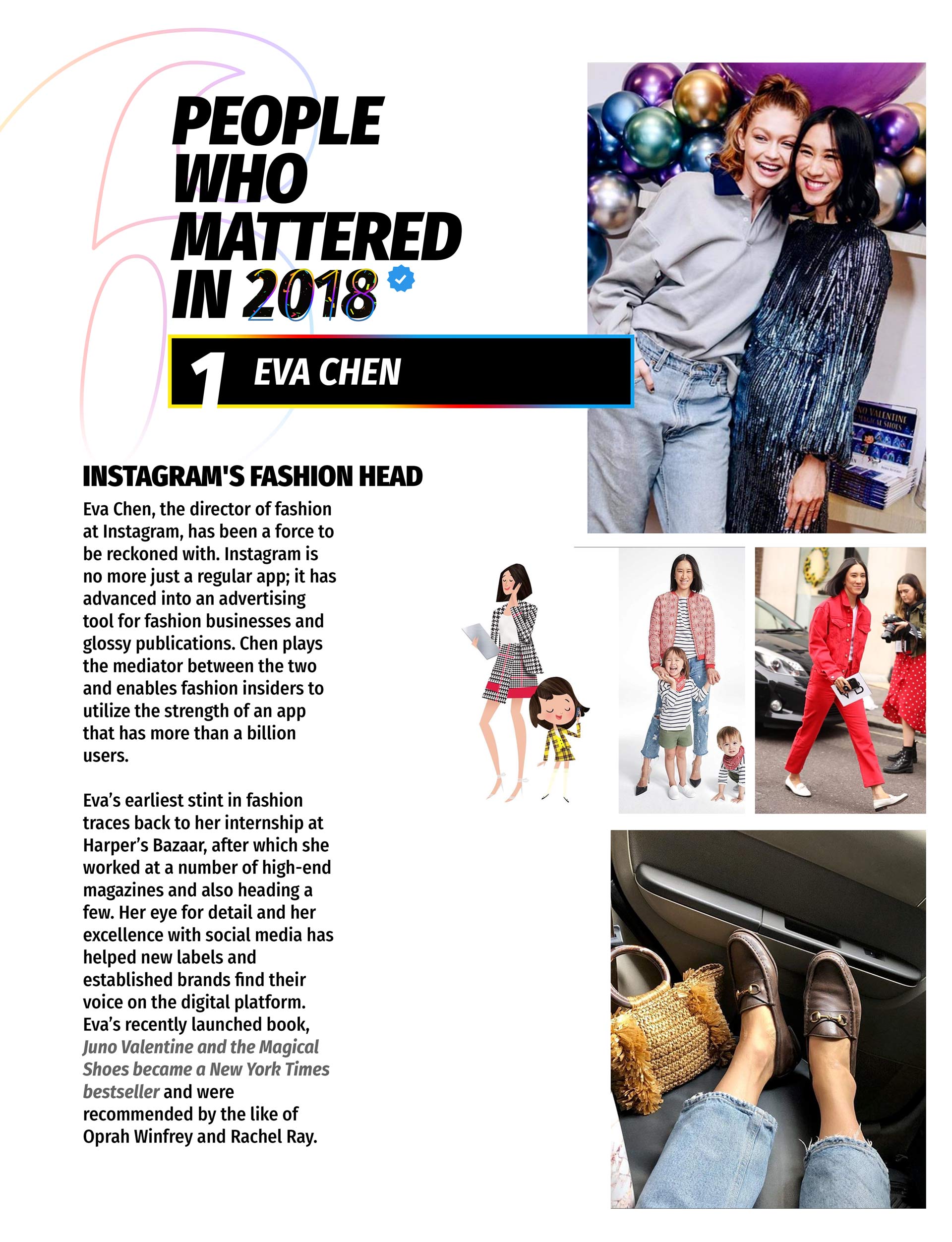 “Eva Chen, the director of fashion at Instagram, has been a force to be reckoned with. Instagram is no more just a regular app; it has advanced into an advertising tool for fashion businesses and glossy publications. Chen plays the mediator between the two and enables fashion insiders to utilize the strength of an app that has more than a billion users. Eva’s earliest stint in fashion traces back to her internship at Harper’s Bazaar, after which she worked at a number of high-end magazines and also heading a few. Her eye for detail and her excellence with social media has helped new labels and established brands find their voice on the digital platform. Eva’s recently launched book, Juno Valentine and the Magical shoes became a New York Times bestseller and were recommended by the like of Oprah Winfrey and Rachel Ray.”