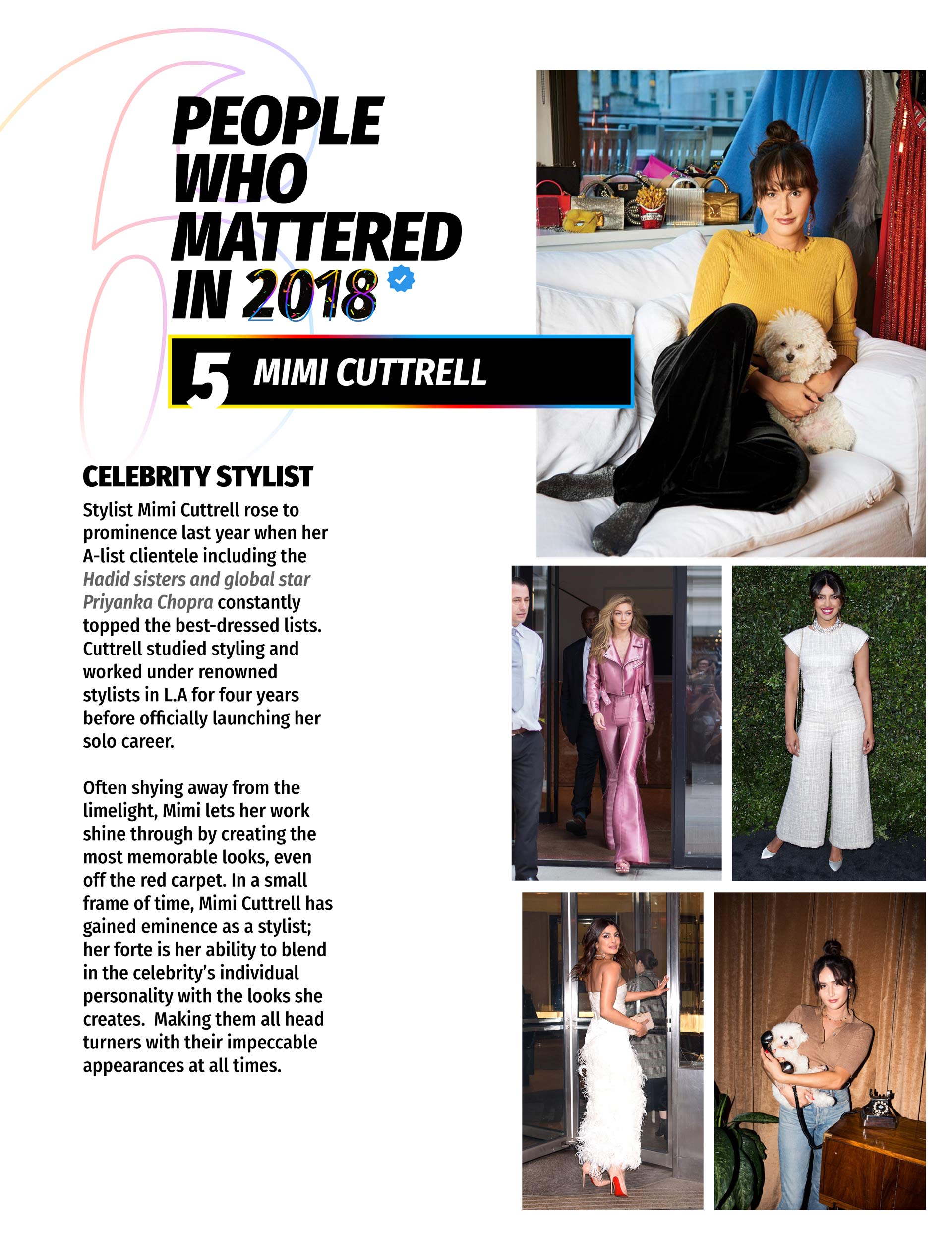 “Stylist Mimi Cutrell rose to prominence last year when her A-list clientele including the Hadid sisters and global star Priyanka Chopra constantly topped the best-dressed lists. Cutrell studied styling and worked under renowned stylists in L.A for four years before officially launching her solo career. Often shying away from the limelight, Mimi lets her work shine through by creating the most memorable looks, even off the red carpet. In a small frame of time, Mimi Cutrell has gained eminence as a stylist; her forte is her ability to blend in the celebrity’s individual personality with the looks she creates. Making them all head turners with their impeccable appearances at all times. ”
