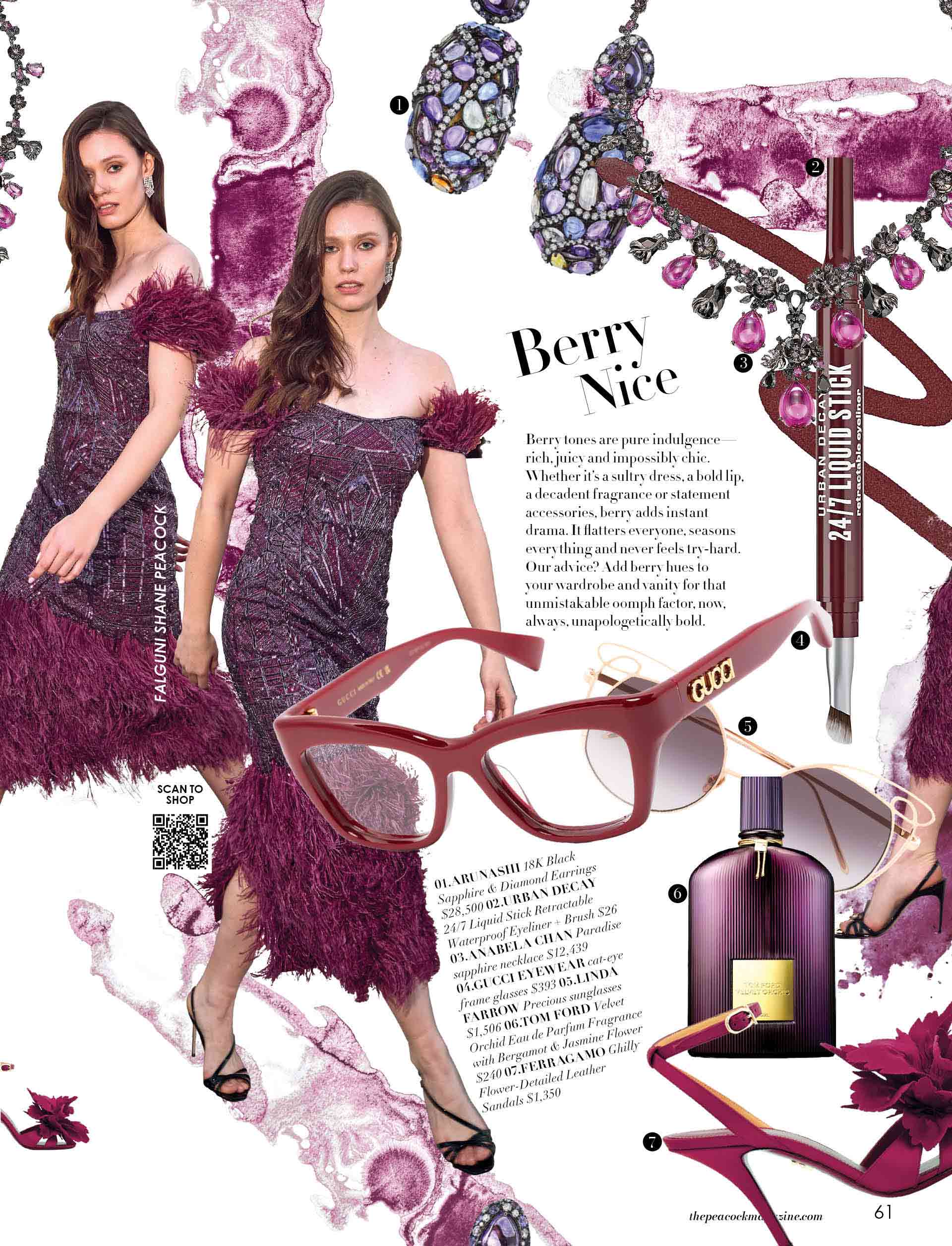 Berry tones are pure indulgence—rich, juicy and impossibly chic. Whether it’s a sultry dress, a bold lip, a decadent fragrance or statement accessories, berry adds instant drama. It flatters everyone, seasons everything and never feels try-hard. Our advice? Add berry hues to your wardrobe and vanity for that unmistakable oomph factor, now, always, unapologetically bold.