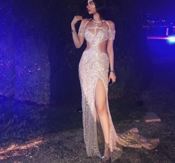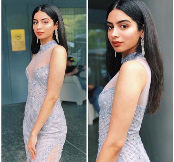 Khushi Kapoor wearing a Chrome applique silver crystal work Gown from falguni shane peacock SHOP…