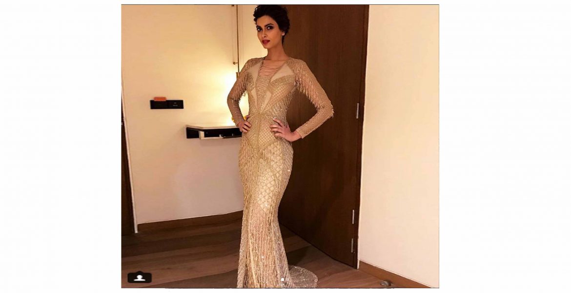 DIANA PENTY IN A CREAM COLOR GOWN Diana Penty wearing a fish cut gown made of cream fabric.Crystals, Danna cut pearl, etc. SHOP DIANA PENTY’S LOOK SHOP THE LOOK GO TO ISSUE