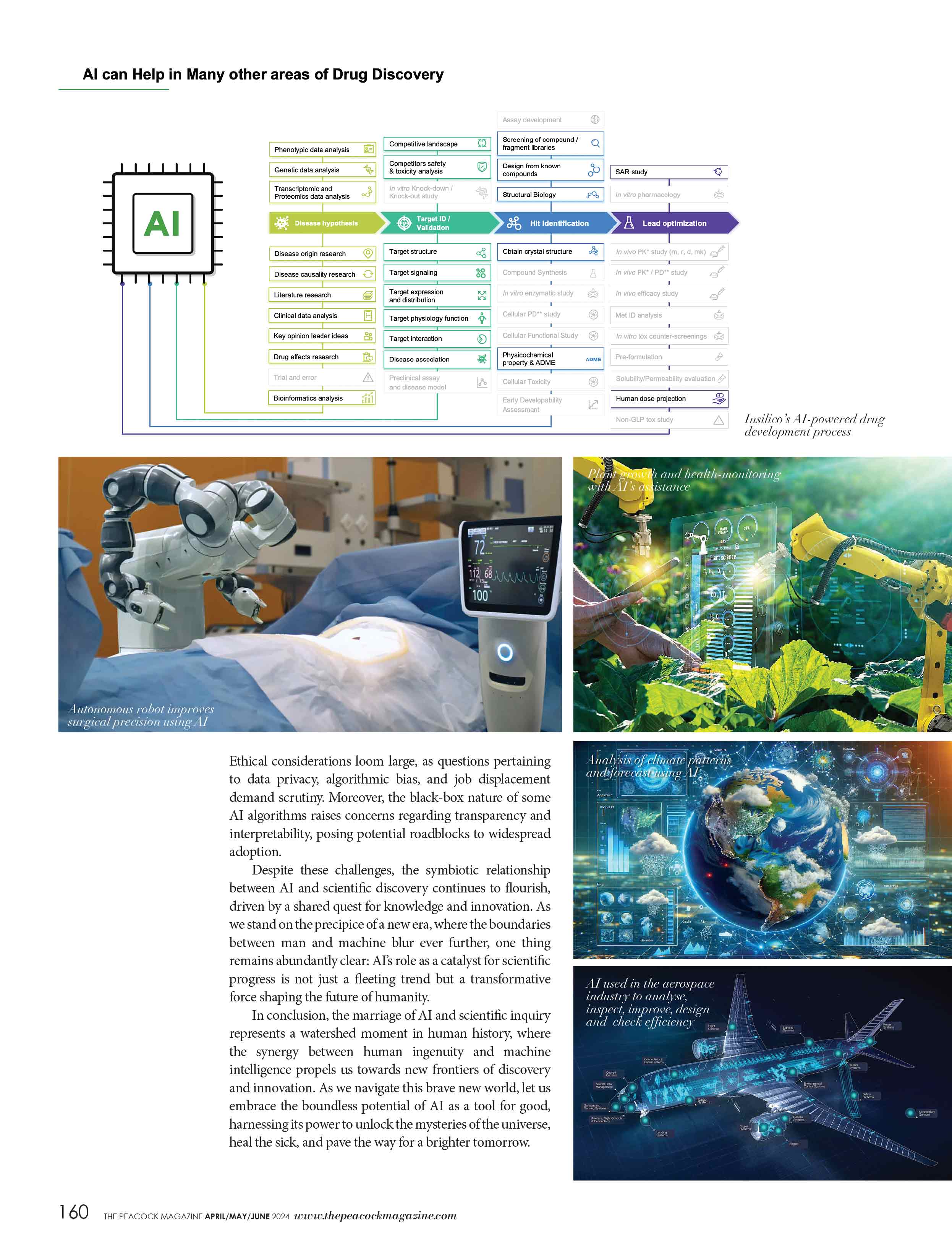In material engineering, AI designs novel materials with tailored properties, revolutionising industries ranging from aerospace to health-care. The collaboration between MIT and AI startup Citrine Informatics is exemplary, where machine learning algorithms accelerated the discovery of new material for use in solar panels by analyzing vast databases of material properties and chemical compositions. However, AI’s journey from laboratory bench to real-world applications is not devoid of challenges. Ethical considerations loom large, as questions pertaining to data privacy, algorithmic bias, and job displacement demand scrutiny. Moreover, the black-box nature of some AI algorithms raises concerns regarding transparency and interpretability, posing potential roadblocks to widespread adoption.