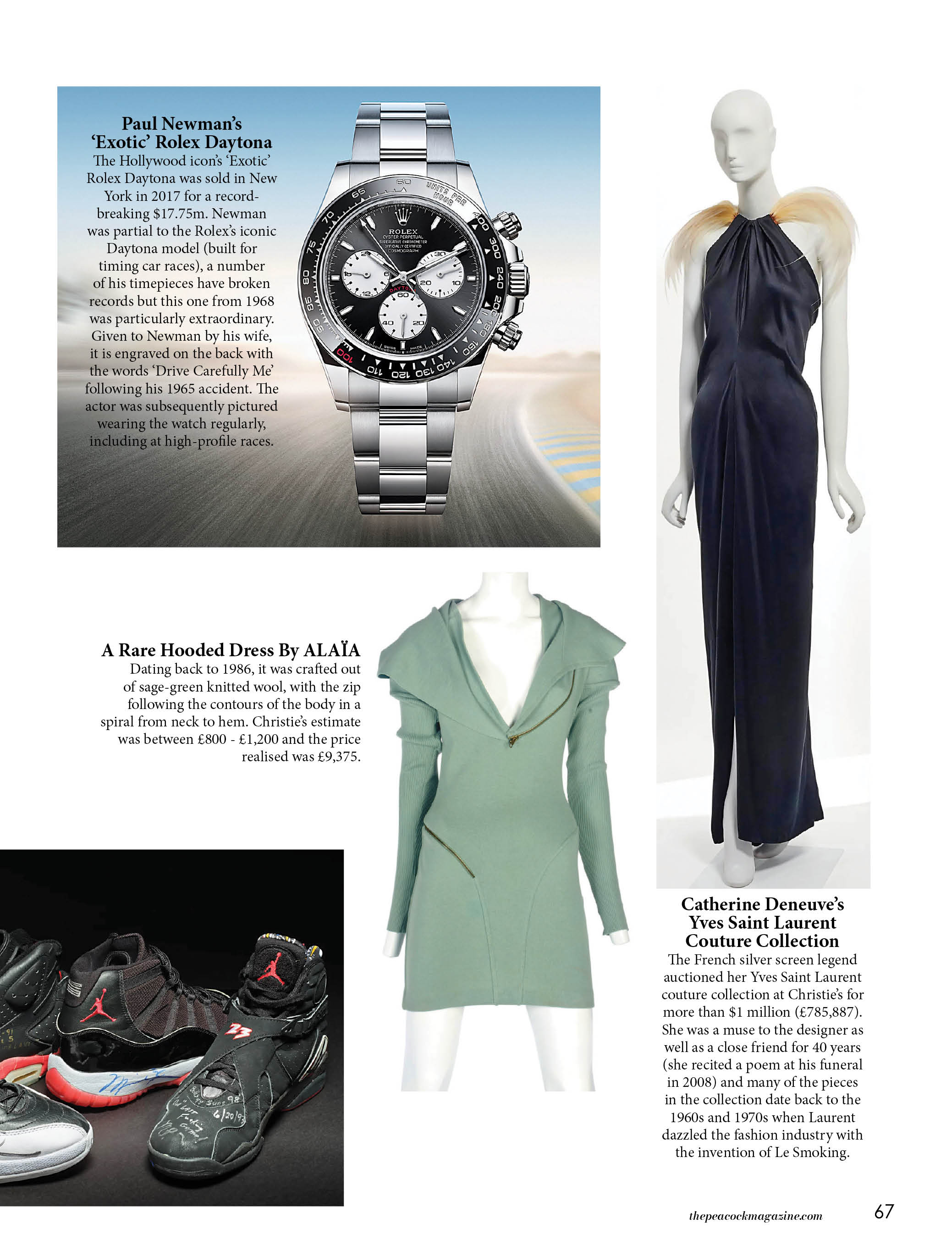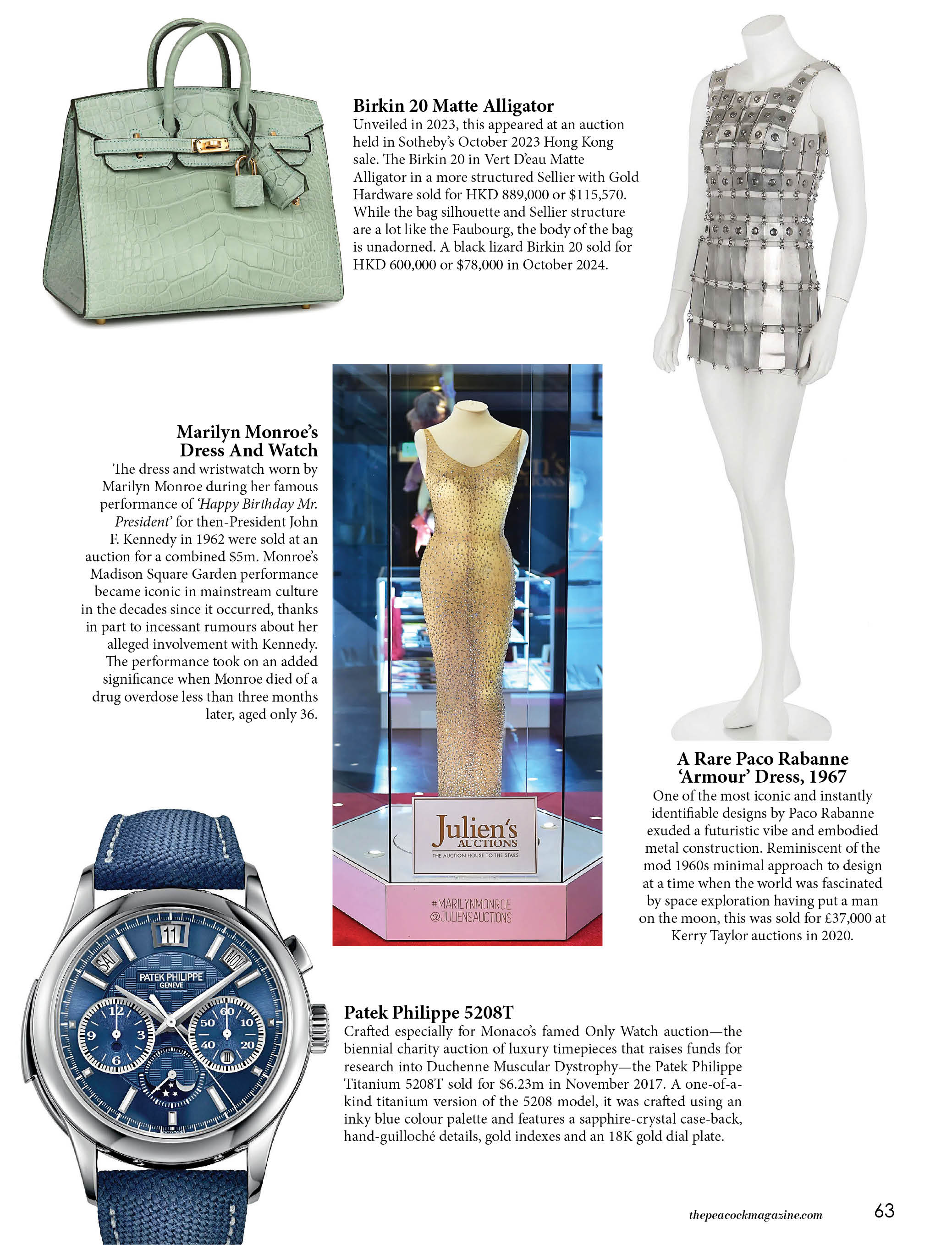 The Peacock Magazine chronicles some iconic fashion memorabilia and limited-edition luxury products, which fetched record-breaking amounts at auctions