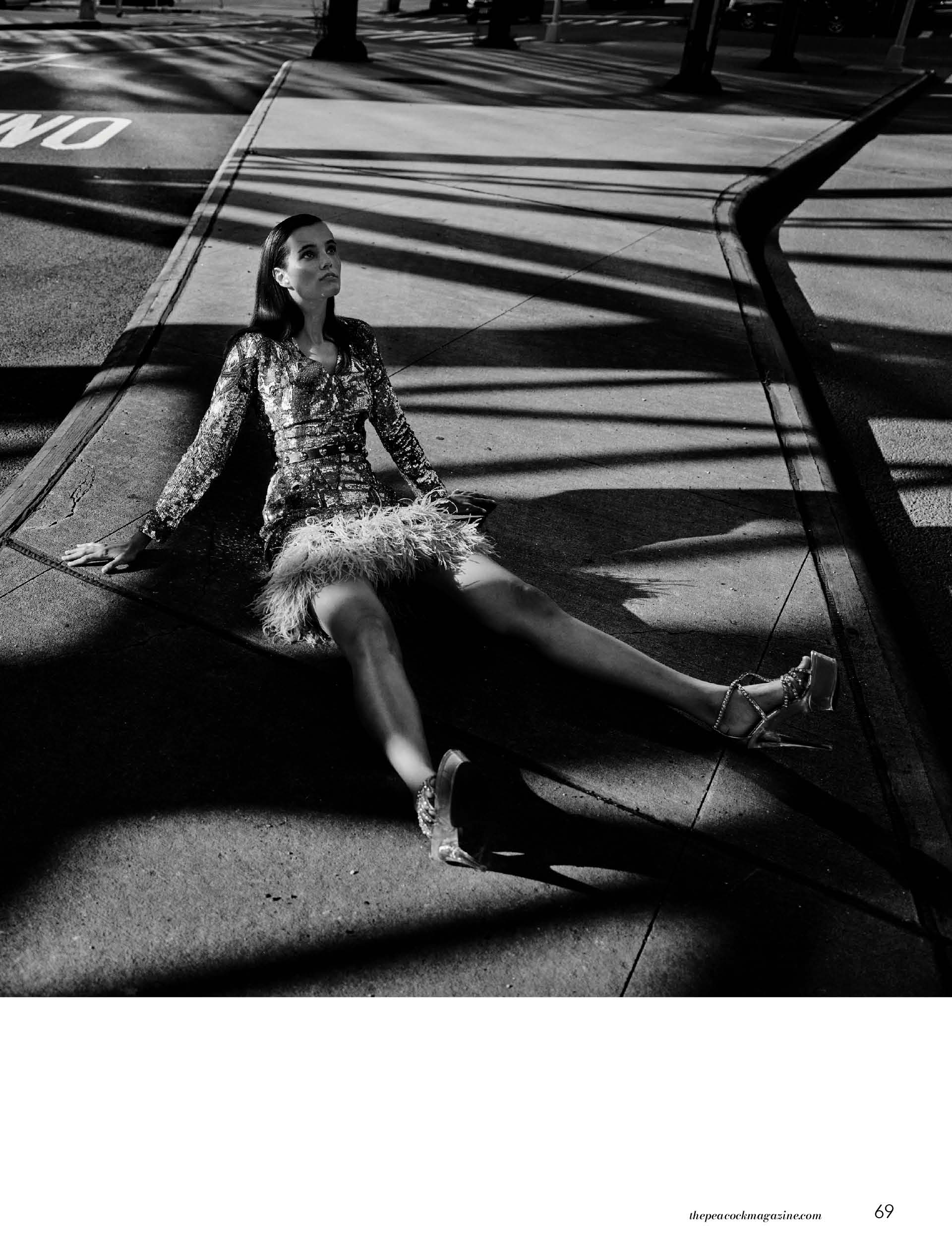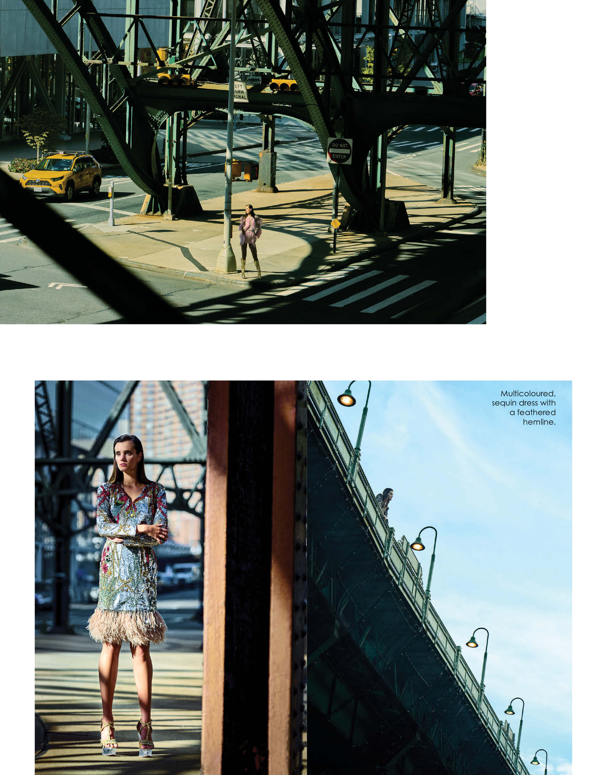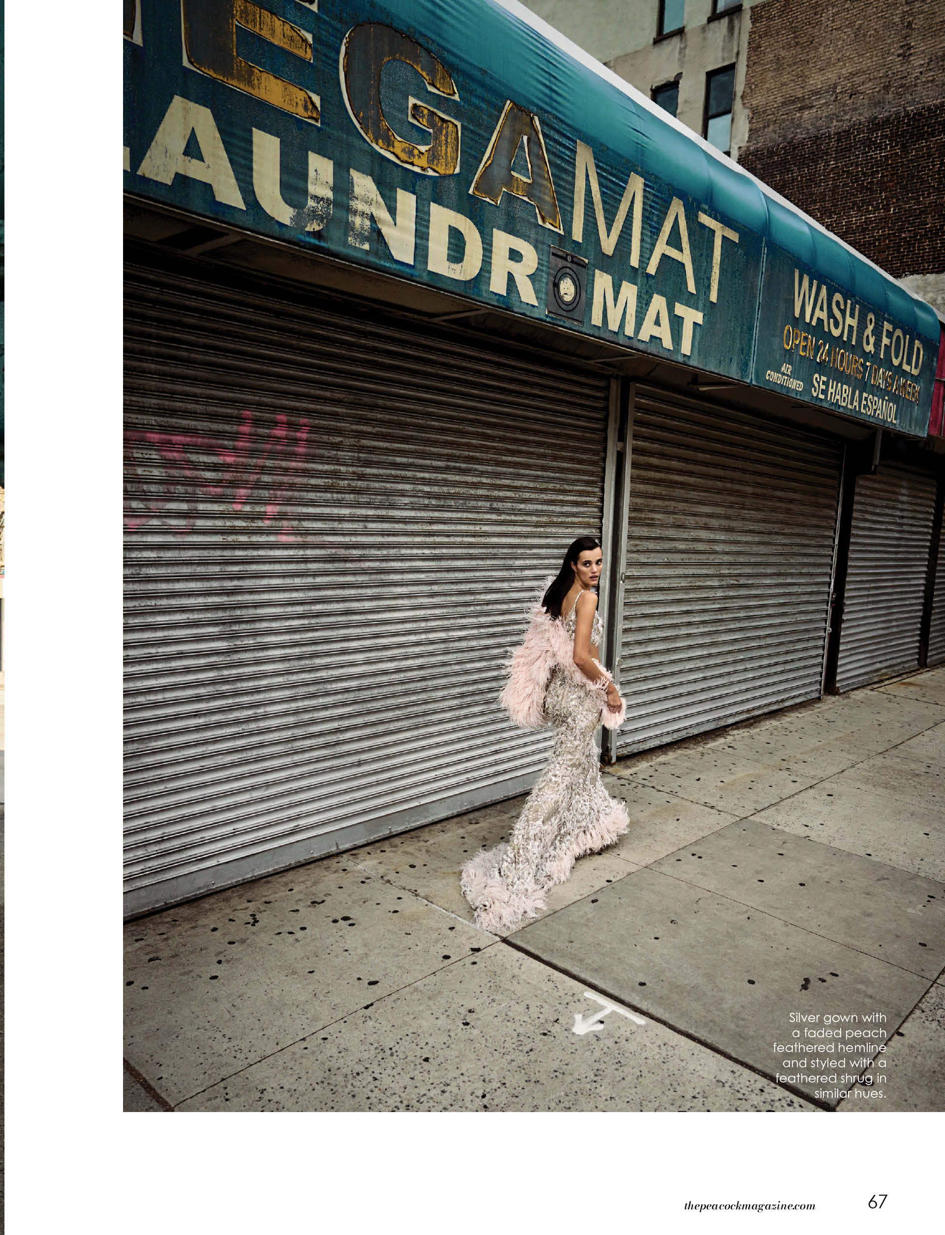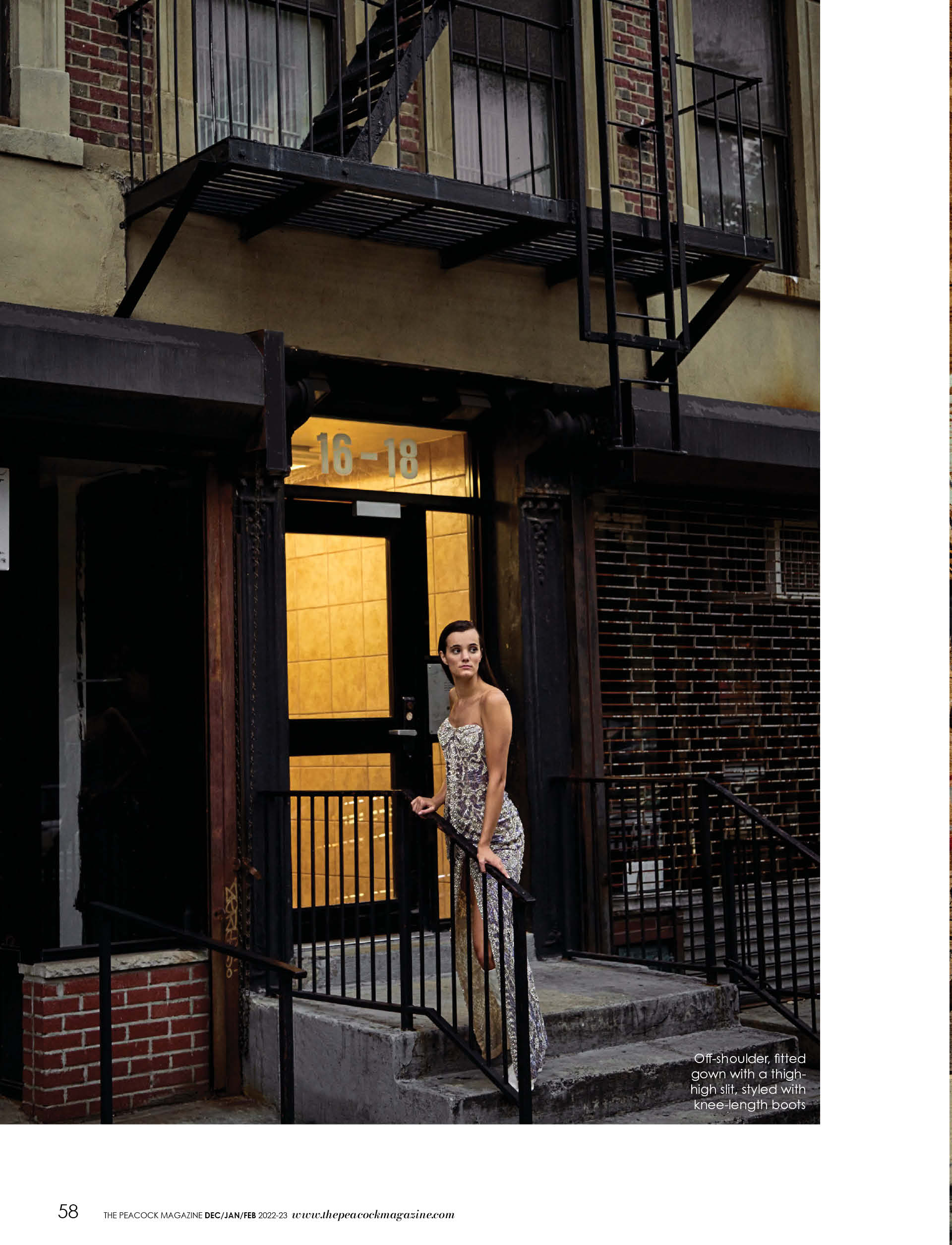 Take to the cultural-chic streets of Harlem and revel in the bling inspired from Falguni Shane Peacock’s ‘Earthbound’ collection that was an ode to the maximal, shiny fashion of the ’80s. Think edgy garbs with power shoulders, rock-chic co-ord sets, unconventionally futuristic short dress-cum-gowns and other highly-stylised silhouettes — making their presence felt in the urbane spaces of Sugar Hill. The embellished fits, which are replete with faceted beads, dome-shaped diamantes, abstract sequins and Swarovski crystals, are a glamorous homage to yesteryear’s fashion. Reimagined gowns, bodycon dresses with risqué cut-outs and feather shrugs are featured in a palette of alluring silver, tough metal, midnight black and royal blue.
