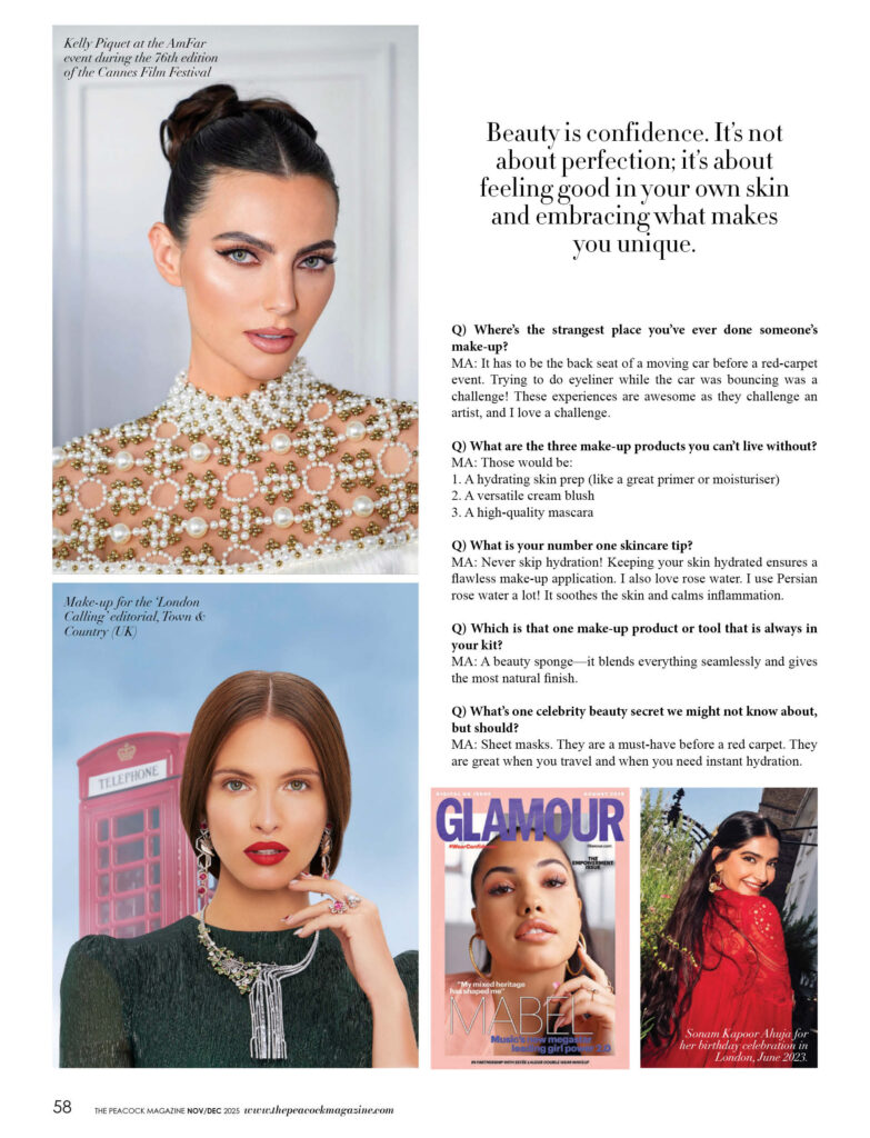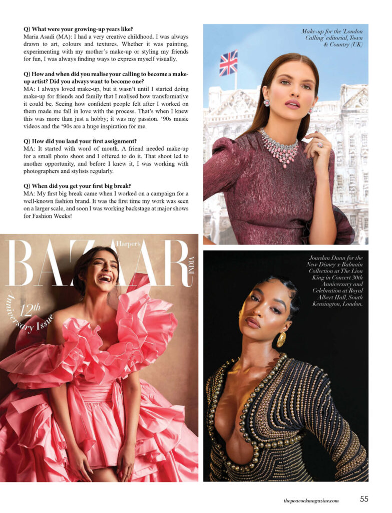 Maria Asadi’s journey into the world of beauty is one of passion, artistry and an innate understanding of confidence. From a childhood immersed in creativity to shaping looks for celebrities and high-fashion editorials, her expertise in radiant, effortless beauty is unmistakable. Inspired by the ’90s and icons like Pat McGrath, Maria’s signature style is all about enhancing natural features with a soft, glamorous touch. In a tête-à-tête with The Peacock Magazine, Maria talks about her vision for her beauty line and her commitment to mentoring emerging artists as she continues to redefine beauty with innovation.