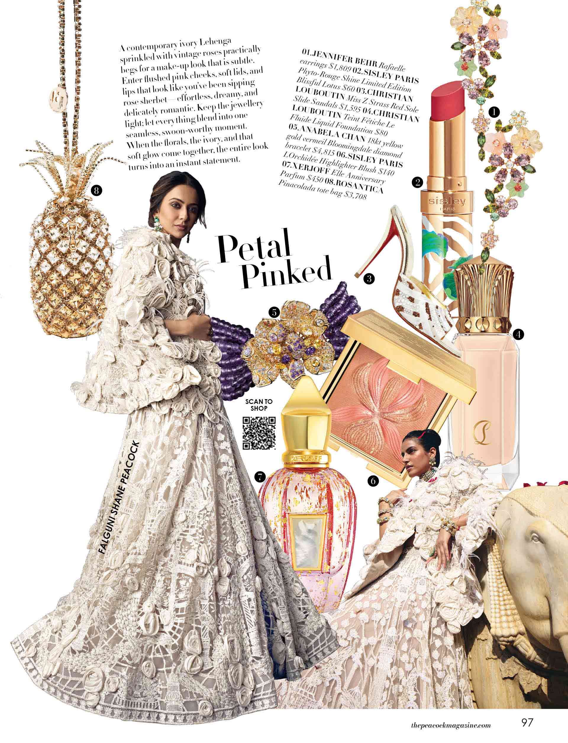 A contemporary ivory Lehenga sprinkled with vintage roses practically begs for a make-up look that is subtle. Enter flushed pink cheeks, soft lids, and lips that look like you’ve been sipping rose sherbet—effortless, dreamy, and delicately romantic. Keep the jewellery light; let everything blend into one seamless, swoon-worthy moment. When the florals, the ivory, and that soft glow come together, the entire look turns into an instant statement.