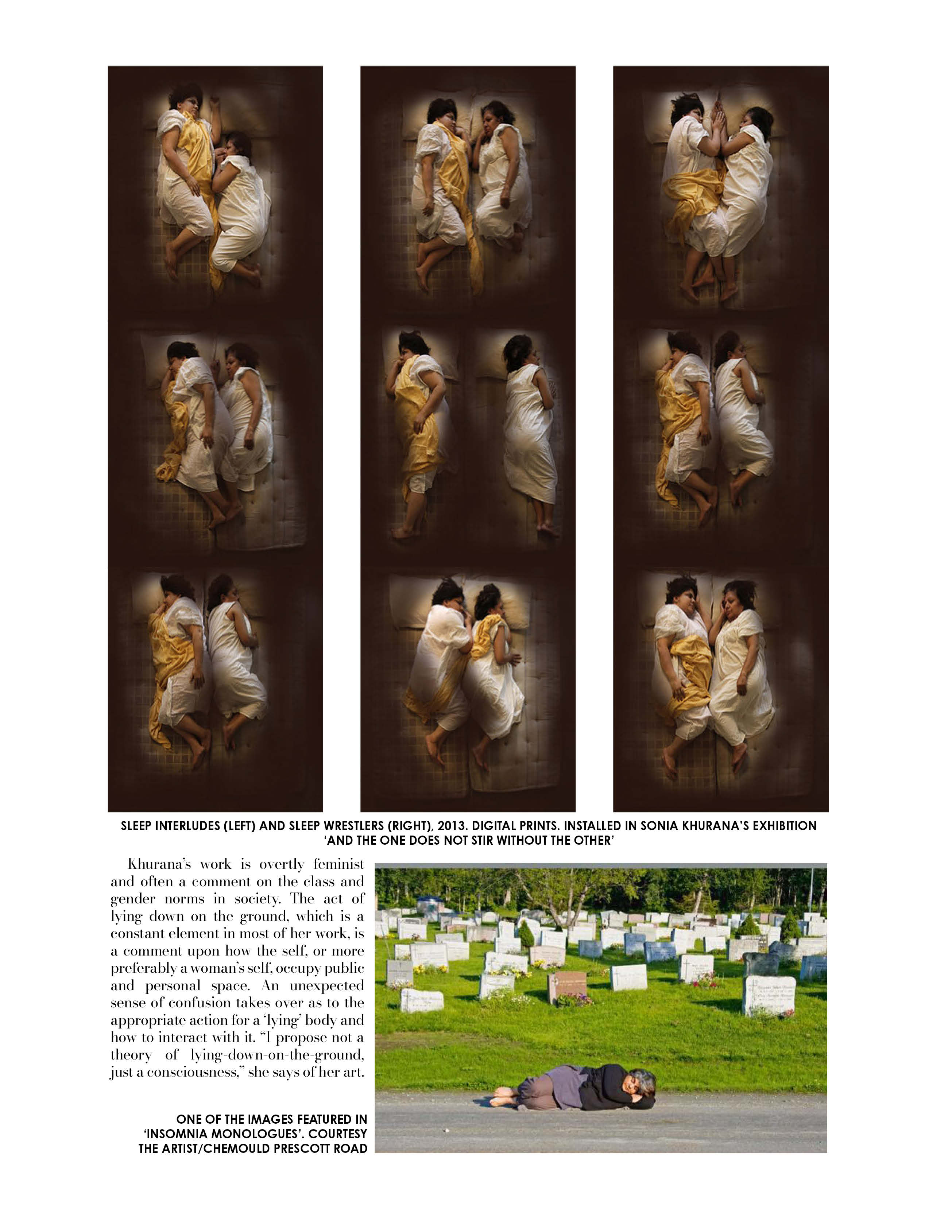 Khurana’s work is overtly feminist and often a comment on the class and gender norms in society. The act of lying down on the ground, which is a constant element in most of her work, is a comment upon how the self, or more preferably a woman’s self, occupy public and personal space. An unexpected sense of confusion takes over as to the appropriate action for a ‘lying’ body and how to interact with it. “I propose not a theory of lying-down-on-the-ground, just a consciousness,” she says of her art.