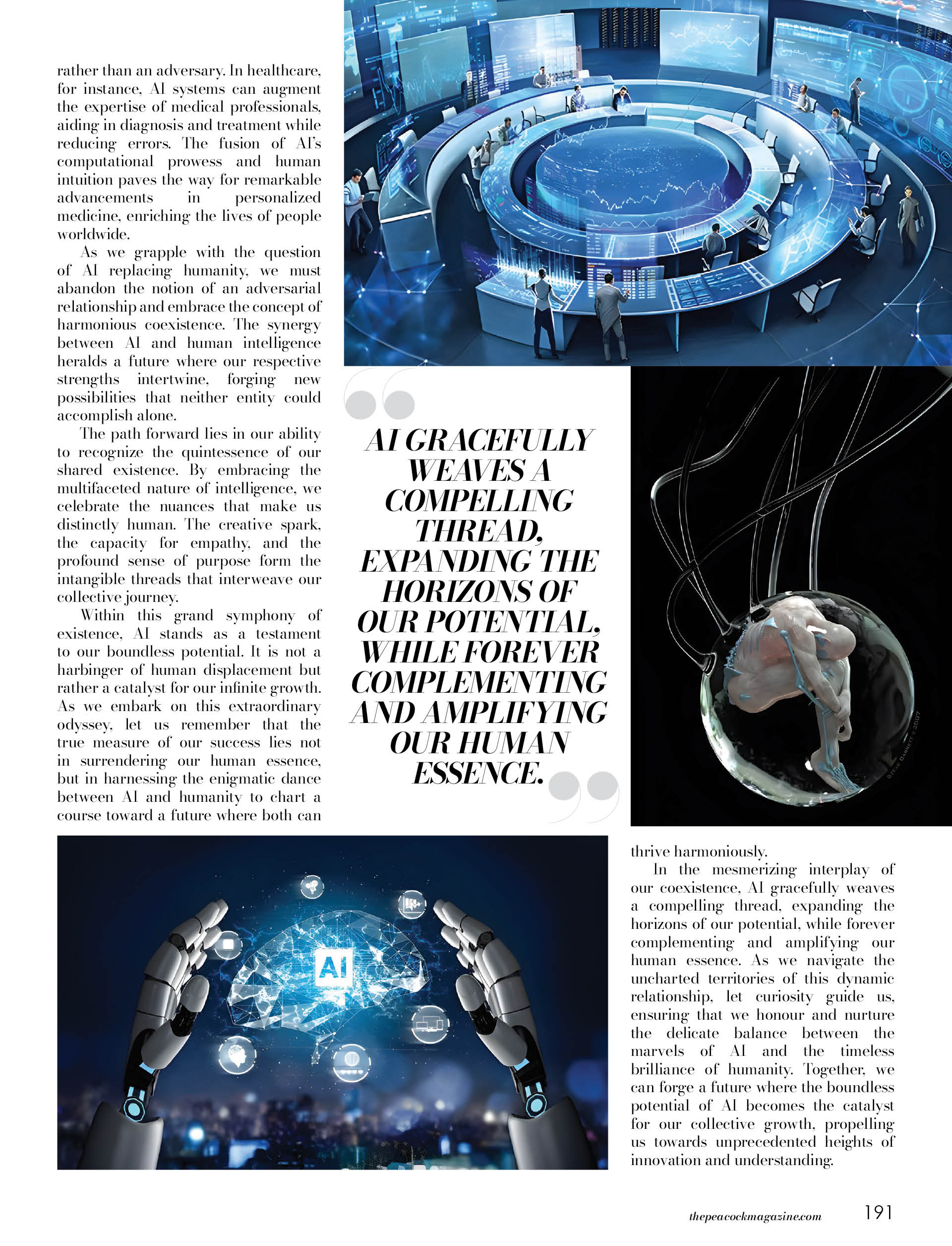 In the mesmerising interplay of our coexistence, AI gracefully weaves a compelling thread, expanding the horizons of our potential while forever complementing and amplifying our human essence. As we navigate the uncharted territories of this dynamic relationship, let curiosity guide us, ensuring that we honour and nurture the delicate balance between the marvels of AI and the timeless brilliance of humanity. Together, we can forge a future where the boundless potential of AI becomes the catalyst for our collective growth, propelling us towards unprecedented heights of innovation and understanding.