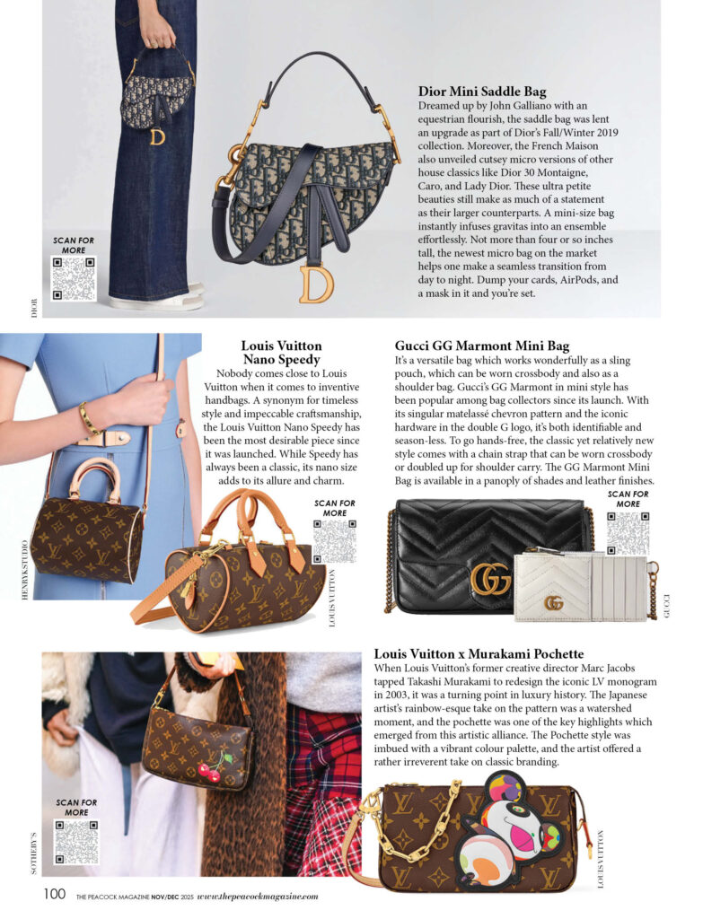 Mini Kelly and Mini Birkin are still all the rage among luxe bag aficionados. Safa Siddiqui—Dubai Bling‘s most envied bag collector swears by the appeal of the miniature size. And she isn’t the only one. ‘The smaller, the more desirable’ seems to be the mantra for style junkies and luxists. Reintroduced by every major luxury brand, these nano-size collectables are compact, chic and surprisingly fit in a lot–from your lipstick to house keys and credit cards. Whether it’s a micro sling bag for a relaxing day with the ladies or a luxe-lit mini clutch for a night out, these dainty prized possessions have emerged as the ultimate fashion necessity. Here’s a list of some of the iconic mini purse styles…