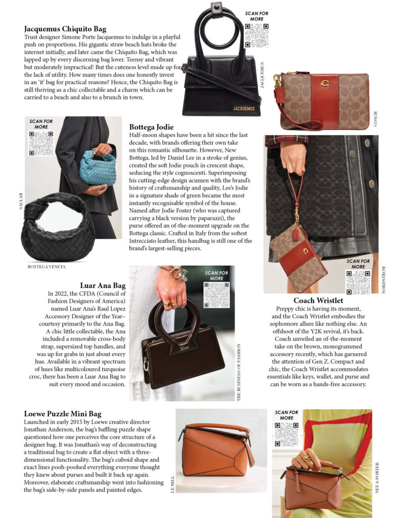 Trust designer Simone Porte Jacquemus to indulge in a playful push on proportions. His gigantic straw beach hats broke the internet initially, and later came the Chiquito Bag, which was lapped up by every discerning bag lover. Teensy and vibrant but moderately impractical! But the cuteness level made up for the lack of utility. How many times does one honestly invest in an ‘it’ bag for practical reasons? Hence, the Chiquito Bag is still thriving as a chic collectable and a charm which can be carried to a beach and also to a brunch in town.