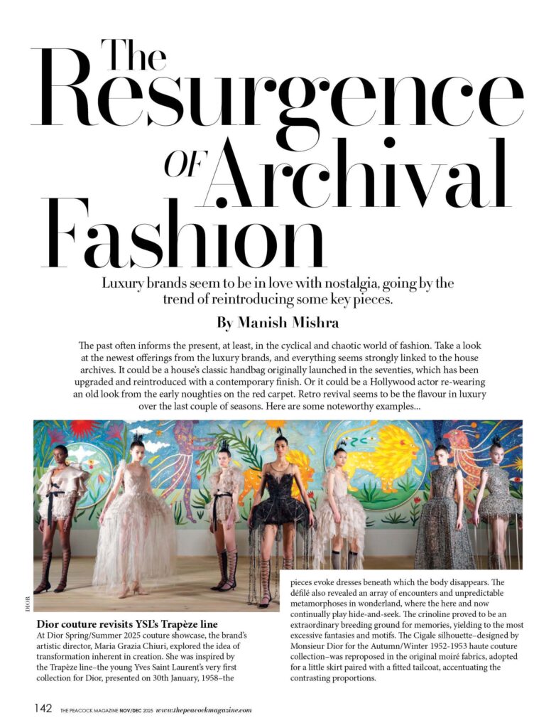 The past often informs the present, at least, in the cyclical and chaotic world of fashion. Take a look at the newest offerings from the luxury brands, and everything seems strongly linked to the house archives. It could be a house’s classic handbag originally launched in the seventies, which has been upgraded and reintroduced with a contemporary finish. Or it could be a Hollywood actor re-wearing an old look from the early noughties on the red carpet. Retro revival seems to be the flavour in luxury over the last couple of seasons. Here are some noteworthy examples…