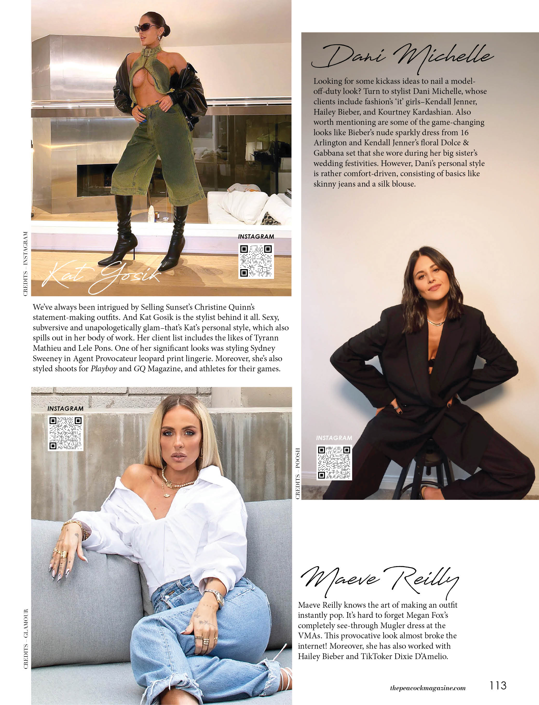 We’ve always been intrigued by Selling Sunset’s Christine Quinn’s statement-making outfits. And Kat Gosik is the stylist behind it all. Sexy, subversive and unapologetically glam–that’s Kat’s personal style, which also spills out in her body of work. Her client list includes the likes of Tyrann Mathieu and Lele Pons. One of her significant looks was styling Sydney Sweeney in Agent Provocateur leopard print lingerie. Moreover, she’s also styled shoots for Playboy and GQ Magazine, and athletes for their games.